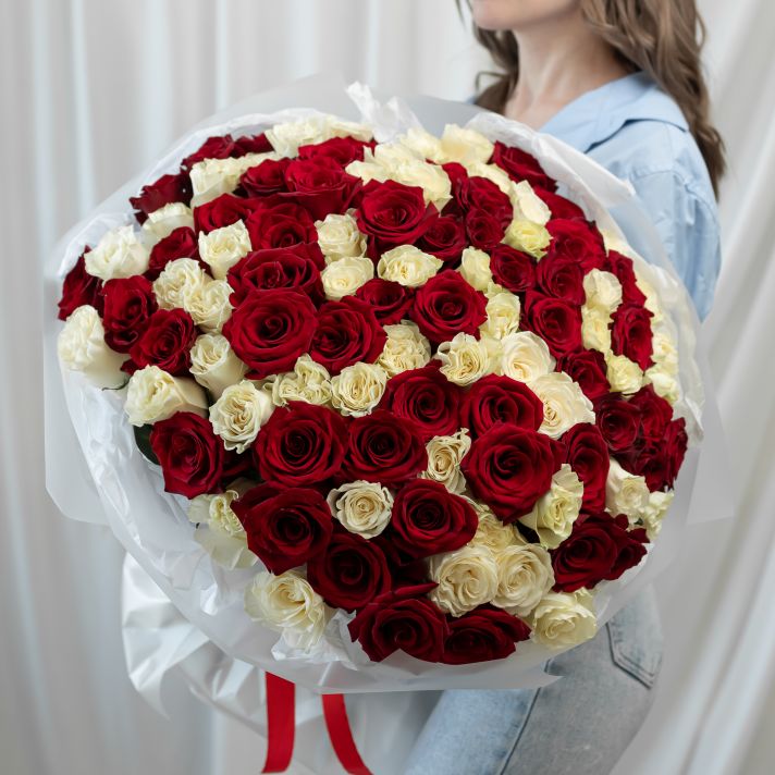 101 кремовая роза (60 см) в дизайнерской упаковке.