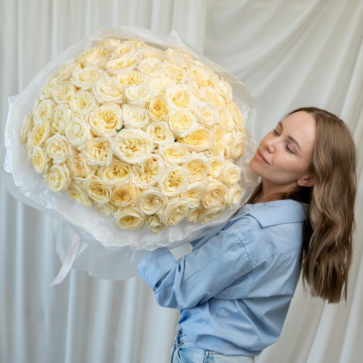 101 кремовая роза (60 см) в дизайнерской упаковке.