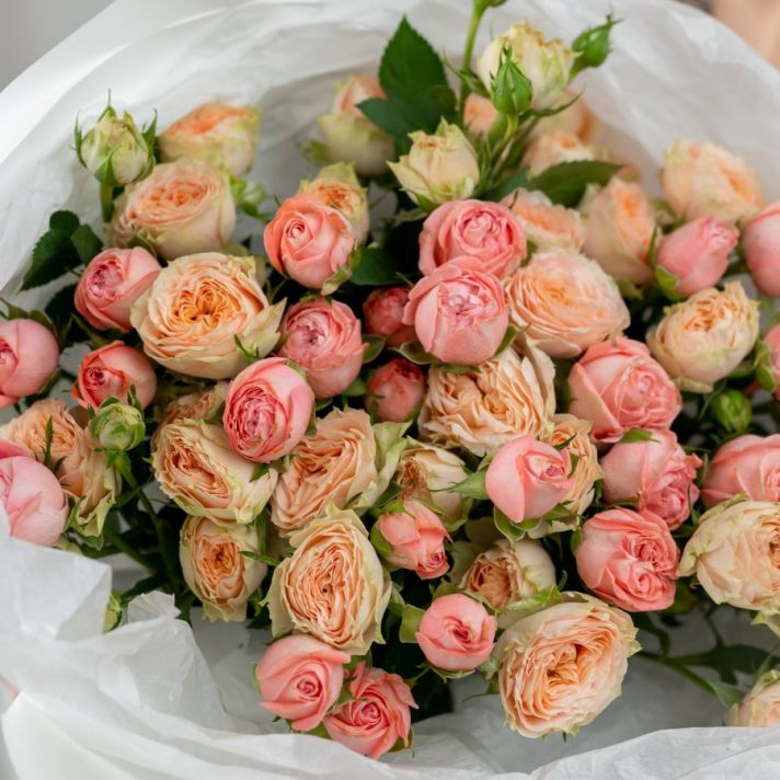 11 кустовых роз нежный микс