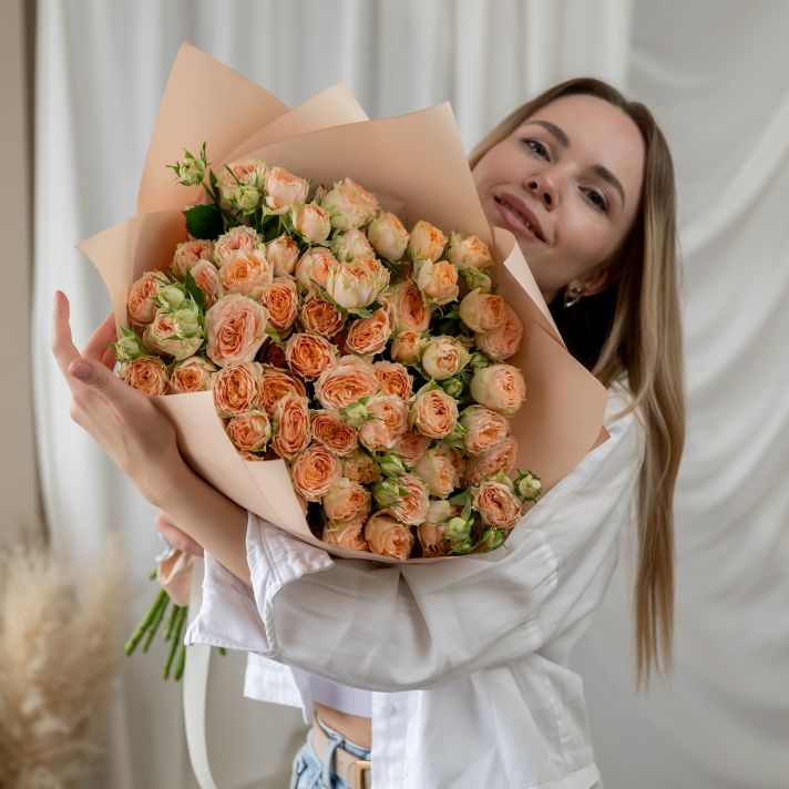 15 кустовых бежевых роз (Кения)