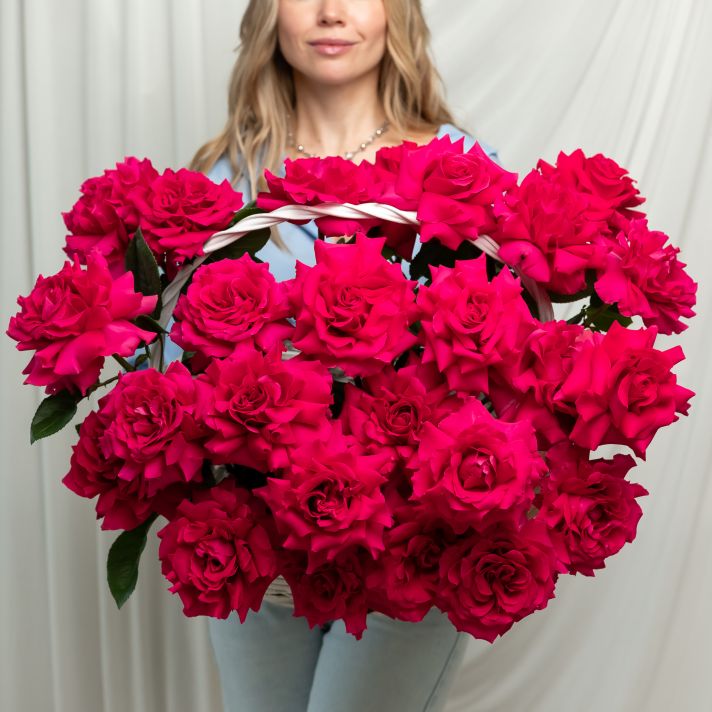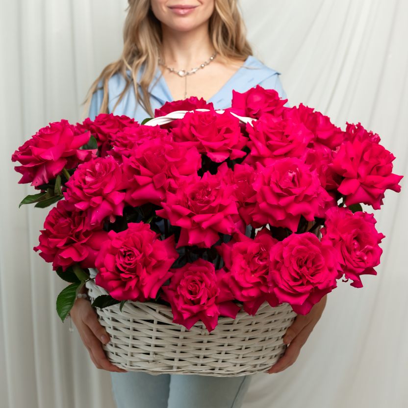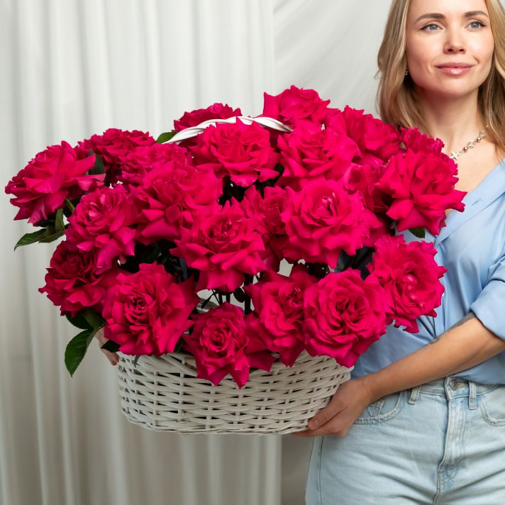 25 Французская роза (Пинк Флойд) в корзине размер L (40/37)