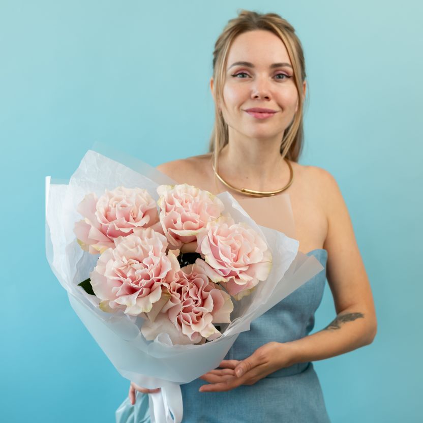 5 французских роз (сорт Пинк Мондиаль)