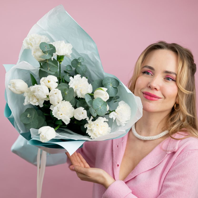 1. Аквабокс (Специальная упаковка, которая служит для сохранения свежести цветов на длительный срок. Представляет собой комбинацию вазы и упаковочного материала, где нижняя часть букета погружена в воду).