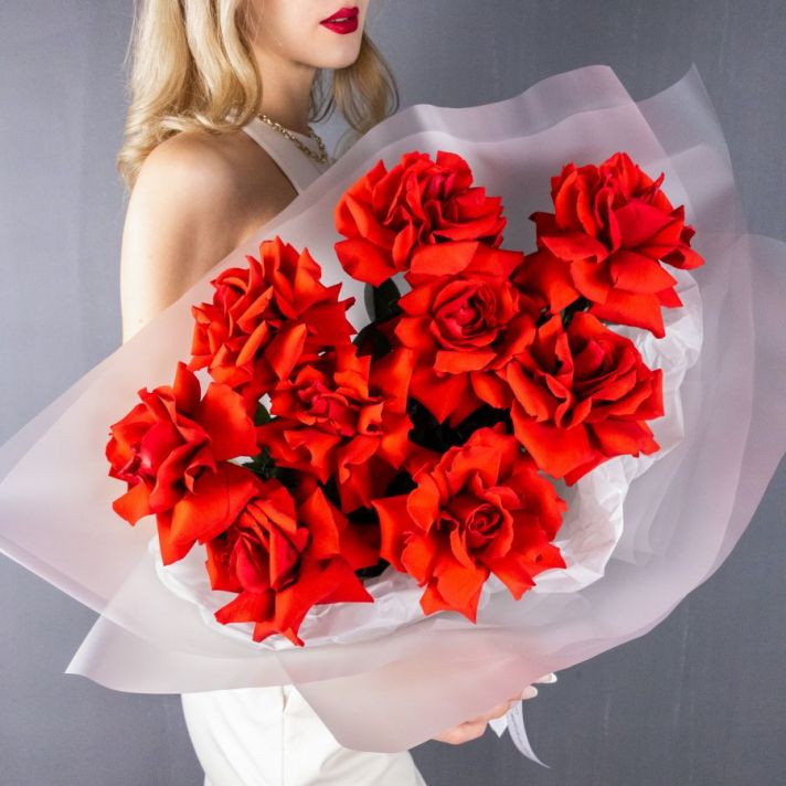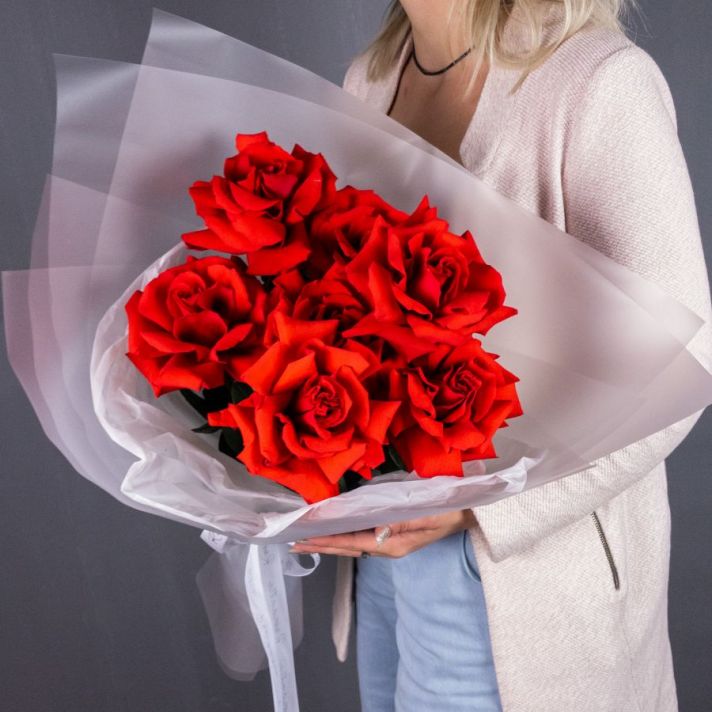 состав: французская роза, тишью, пленка матовая, лента атласная.
