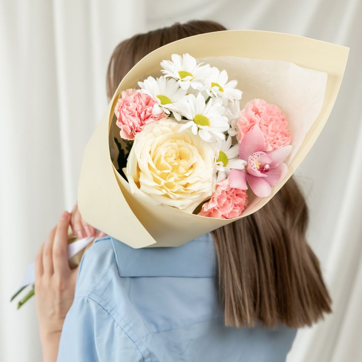 2. Переноска (Специальный каркас из картона, который добавит не только оригинальности, но и защищает цветы от внешних воздействий при транспортировке).
