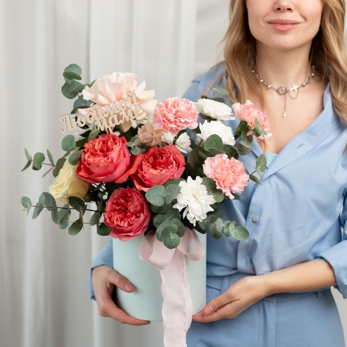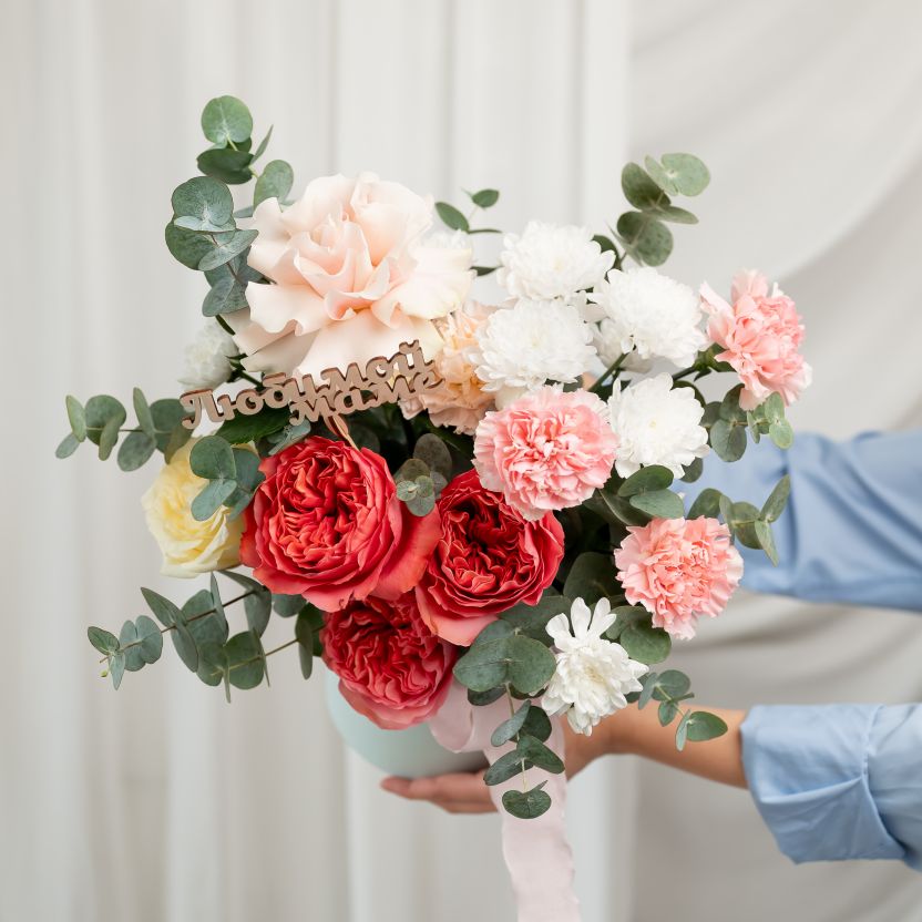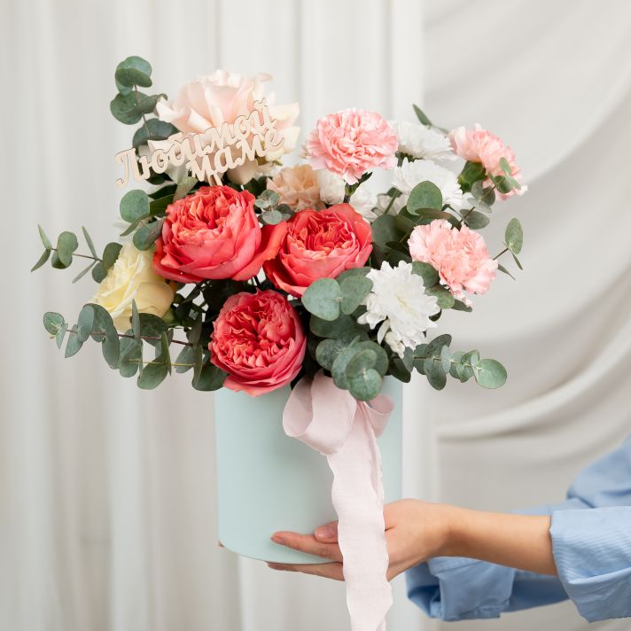 1. Аквабокс (Специальная упаковка, которая служит для сохранения свежести цветов на длительный срок. Представляет собой комбинацию вазы и упаковочного материала, где нижняя часть букета погружена в воду).