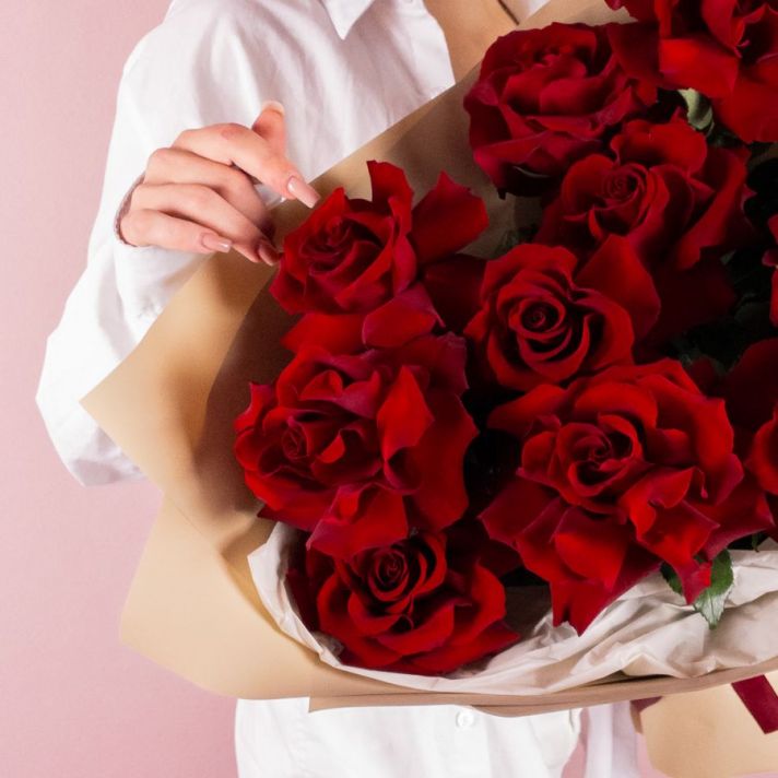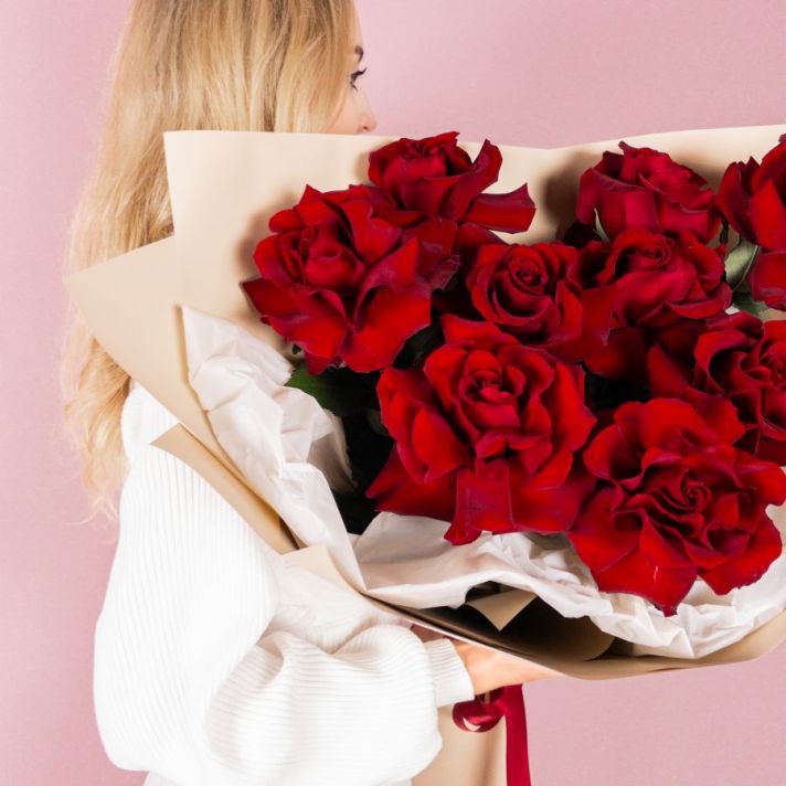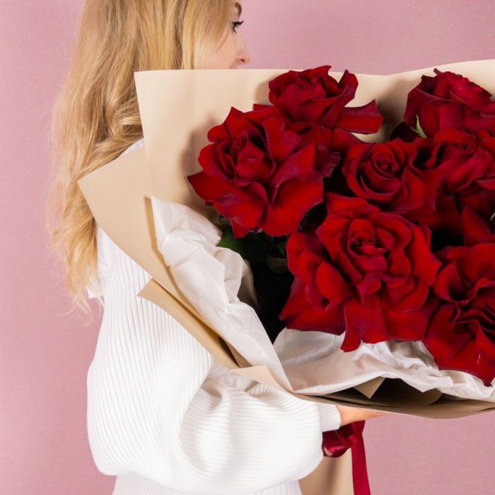 7 французских роз Пинк Мондиаль в мятной упаковке