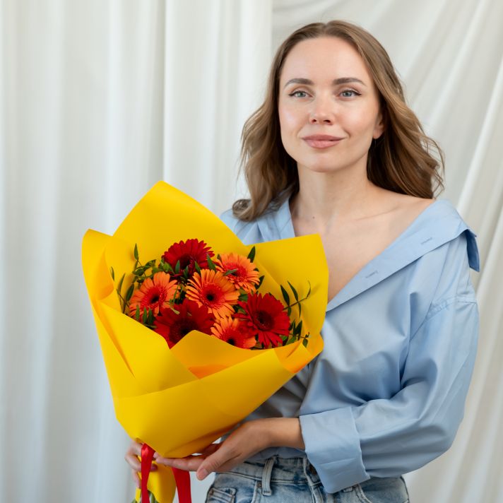 Алтай хриза - 1 Кустовая роза - 1 Гербера - 3 Упаковка - 1