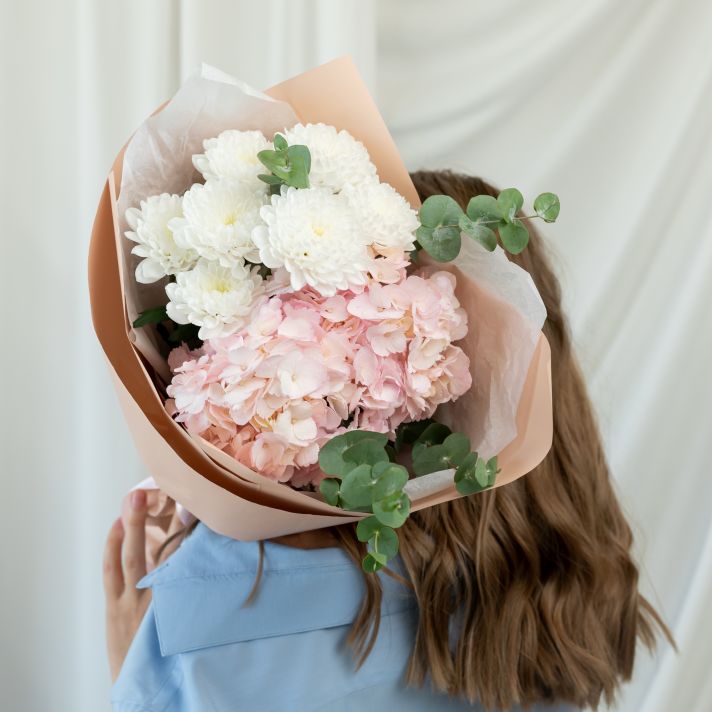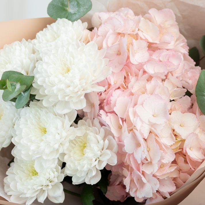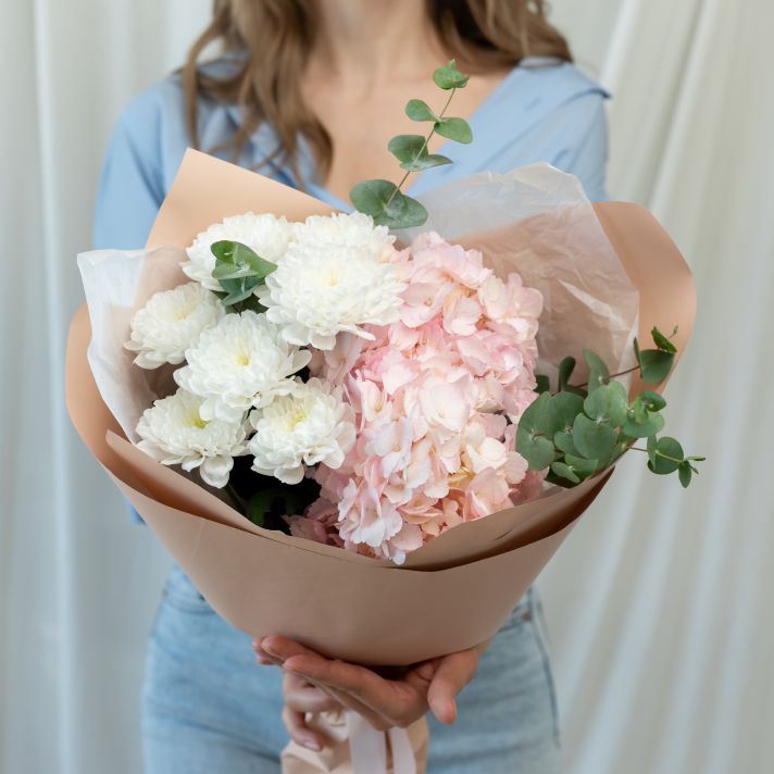 Сирень - 2 /Кустовая пионовидная - 2 /Диантус - 5 /Гортензия - 1 шт /Эвкалипт - 2 шт /Упаковка - 1 шт