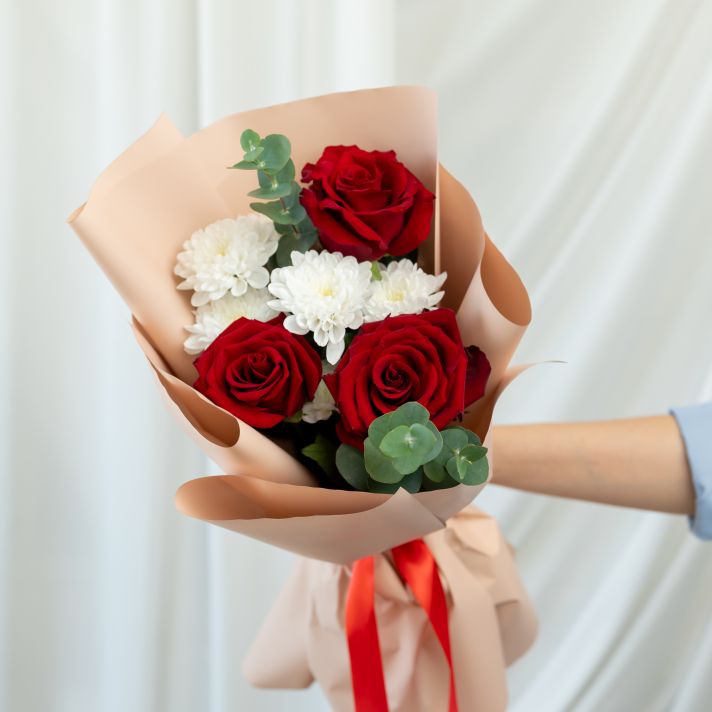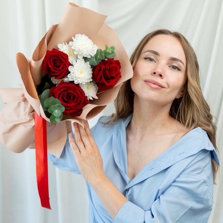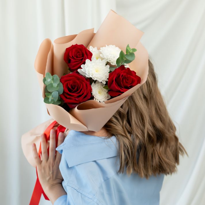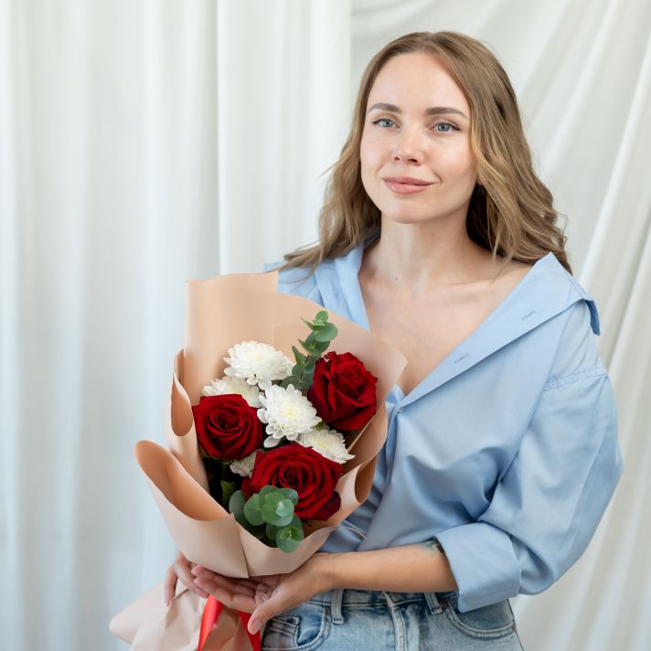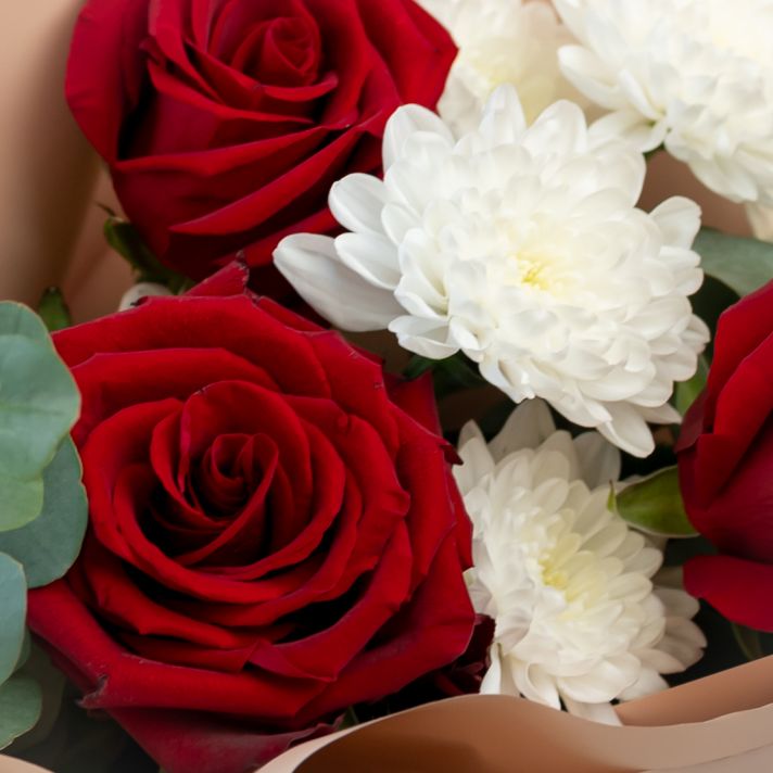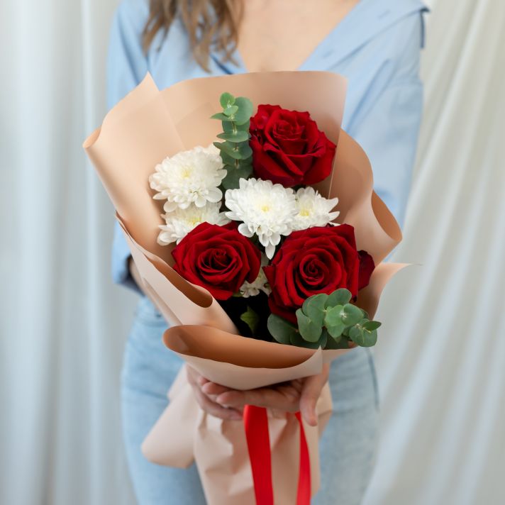 Алтай хриза - 1 Роза красная - 2 Эвкалипт - 1 Упаковка - 1