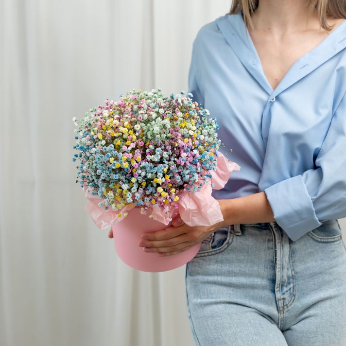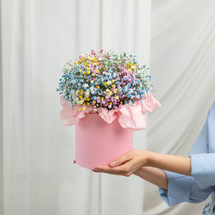 1. Аквабокс (Специальная упаковка, которая служит для сохранения свежести цветов на длительный срок. Представляет собой комбинацию вазы и упаковочного материала, где нижняя часть букета погружена в воду).