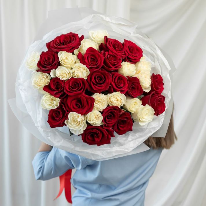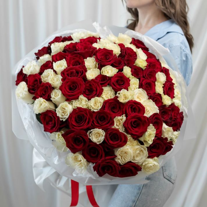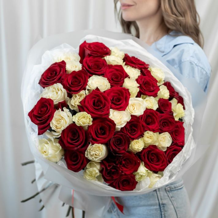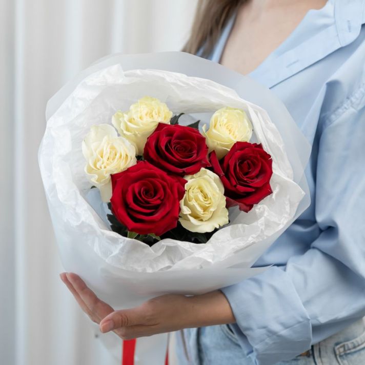 Красная и белая роза от 7 шт (60 см Эквадор)