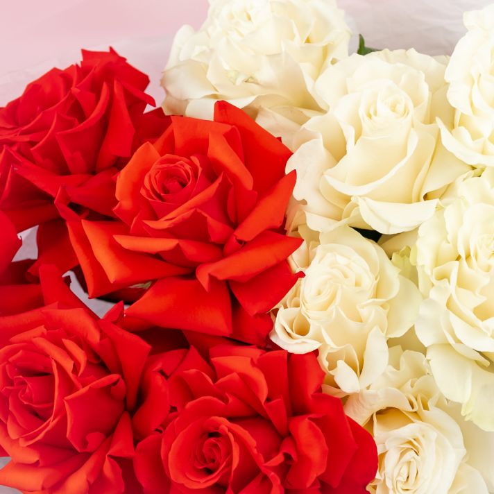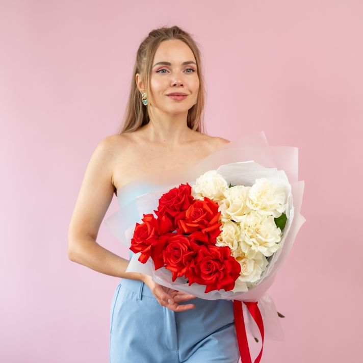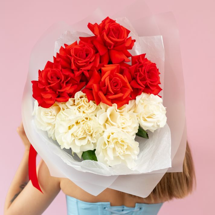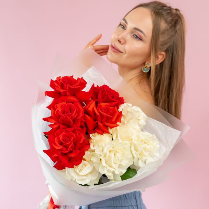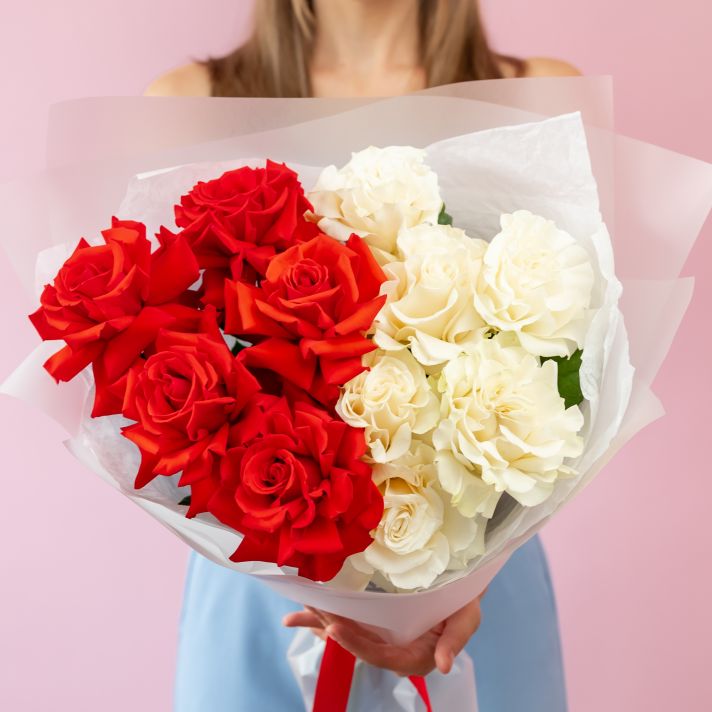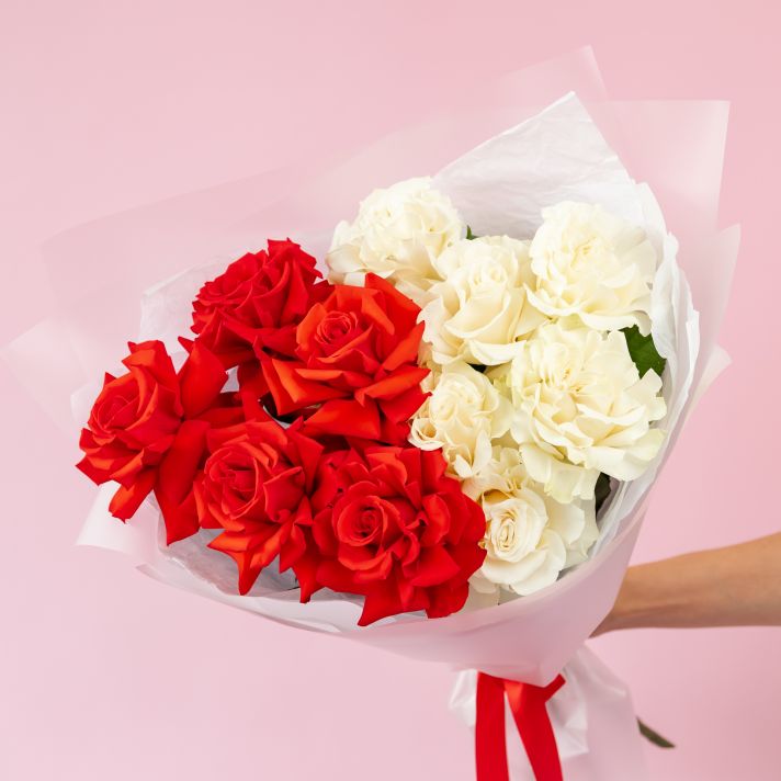 Красные и белые французские розы 11 шт