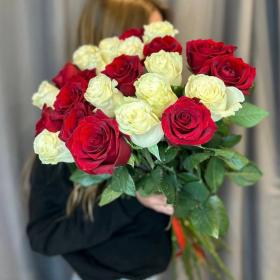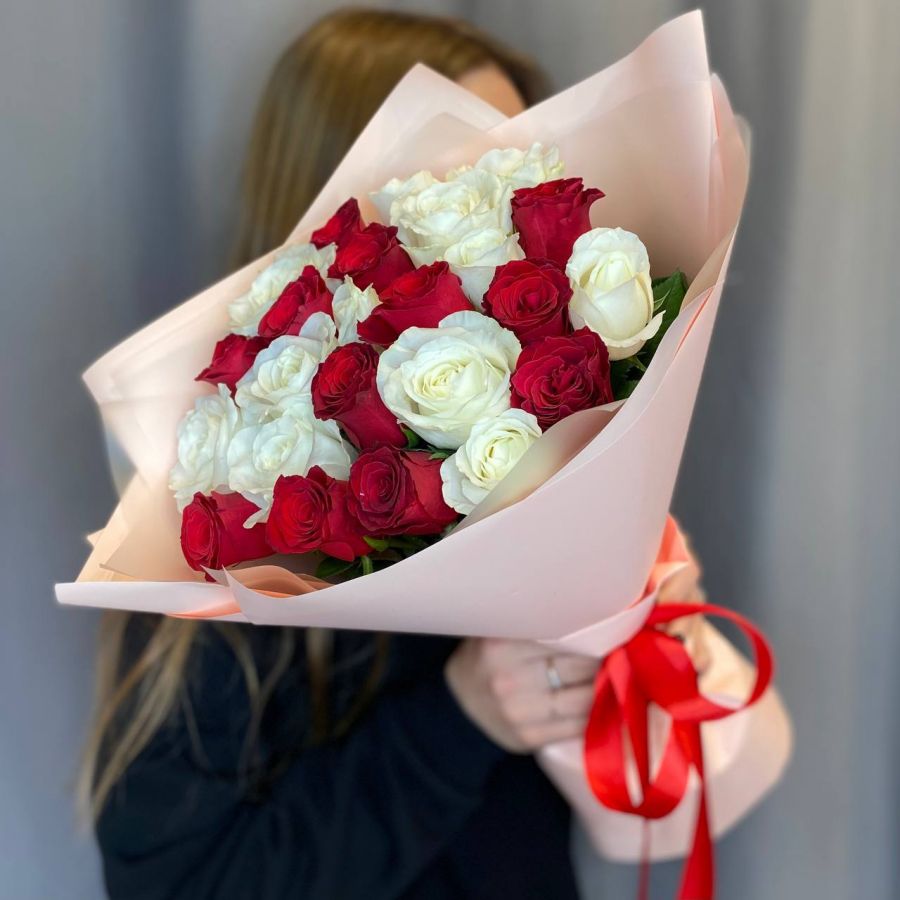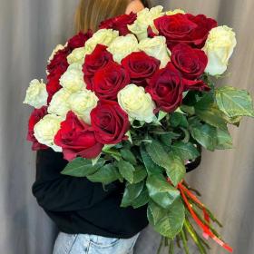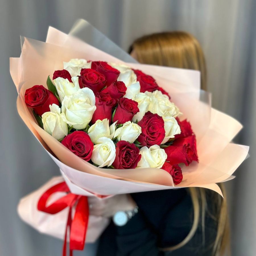 Розы неслучайно являются самым популярным цветком для подарочных композиций. Сорта красного цвета всегда считались символом страстной и всеобъемлющей любви. Но не только букет красных бутонов способен рассказать о ваших чувствах. Белые розы – это смирение, верность и невинность; желтые сорта символизируют дружбу и радость (а не разлуку, как считают многие); розовые цветы означают благодарность, признательность и восхищение. Разноцветный букет способен передать послание, содержащее многогранное признание. Так, к примеру, композиция из белых и красных роз сможет выразить вашу уверенность в гармоничных чувствах, построенных на общности интересов и полном единении.