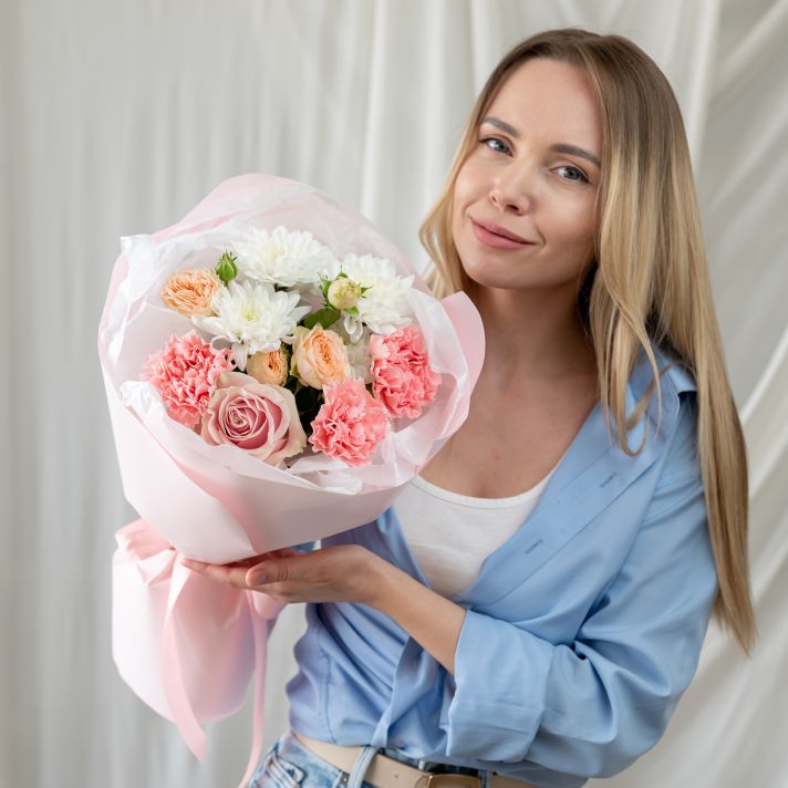 Алтай хриза - 1шт / Роза одноголовая - 1шт / Кустовая - 1шт / Диантус - 3шт / Упаковка - 1