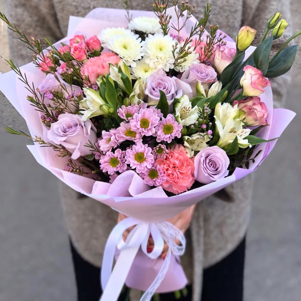 В связи с сезонностью цветов, состав букета может быть изменён на усмотрение флориста. Цветовая гамма и стилистика букета остаются прежними.