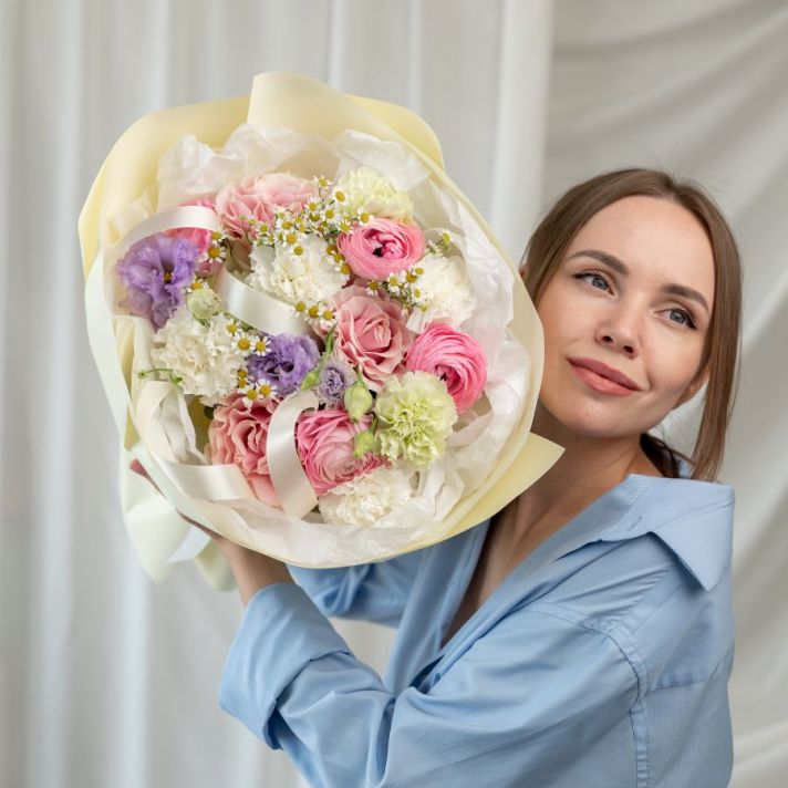 В связи с сезонностью цветов, состав букета может быть изменён на усмотрение флориста. Цветовая гамма, стилистика букета и бюджет остаются прежними.