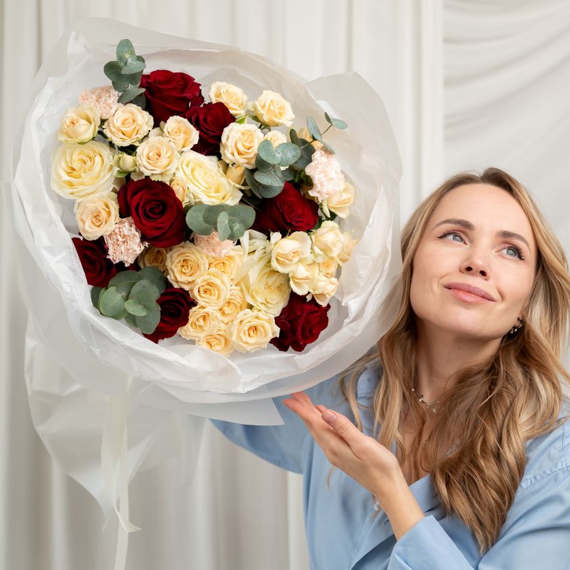 1. Аквабокс (Специальная упаковка, которая служит для сохранения свежести цветов на длительный срок. Представляет собой комбинацию вазы и упаковочного материала, где нижняя часть букета погружена в воду).