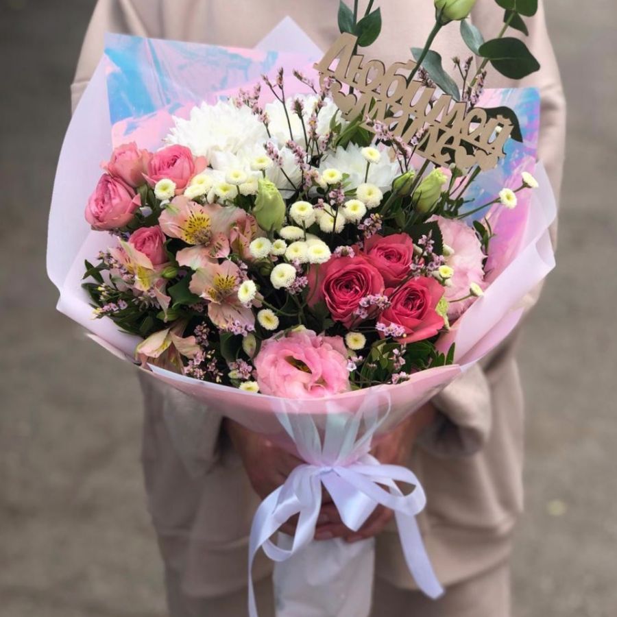 Сборный букет с топпером «Любимой маме»