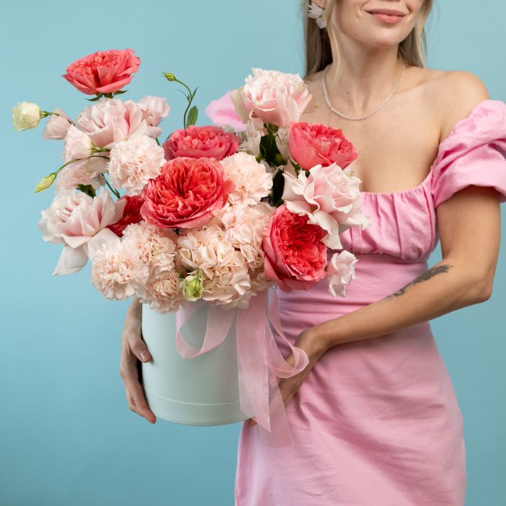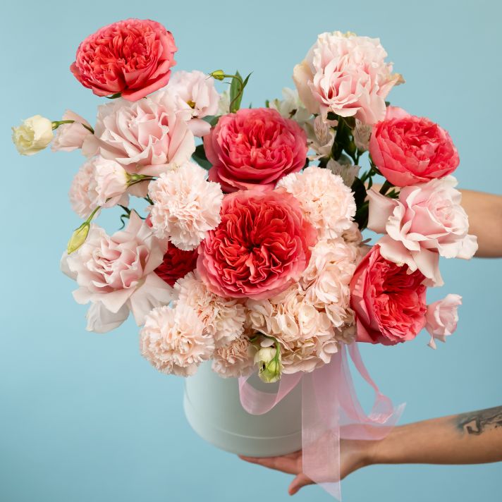 1. Аквабокс (Специальная упаковка, которая служит для сохранения свежести цветов на длительный срок. Представляет собой комбинацию вазы и упаковочного материала, где нижняя часть букета погружена в воду).