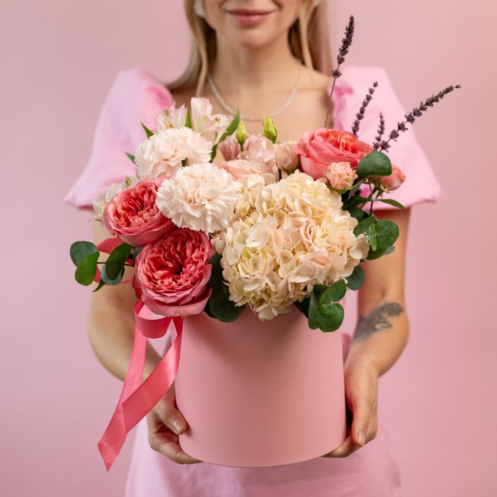 1. Аквабокс (Специальная упаковка, которая служит для сохранения свежести цветов на длительный срок. Представляет собой комбинацию вазы и упаковочного материала, где нижняя часть букета погружена в воду).